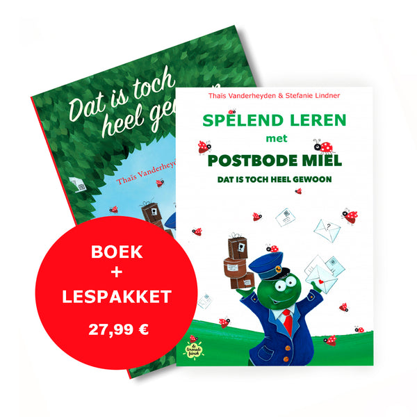 U kan het pakket hier bestellen. Vul -in de check-out- zorgvuldig uw e-mailadres in en de PDF van uw gloednieuw Spelend Leren met Postbode Miel komt eraan!