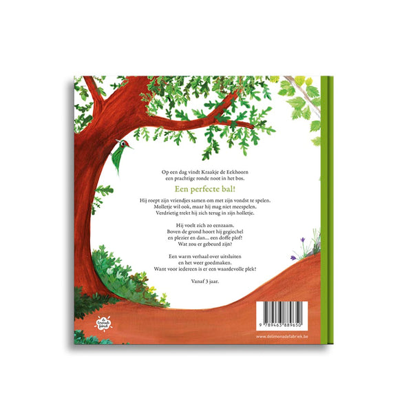 Op een dag vindt Kraakje de Eekhoorn een prachtige ronde noot in het bos. Een perfecte bal! Hij roept zijn vriendjes samen om met zijn vondst te spelen. Molletje wil ook, maar hij mag niet meespelen. Verdrietig trekt hij zich terug in zijn holletje. Hij voelt zich zo eenzaam. Boven de grond hoort hij gegiechel en plezier en dan… een doffe plof!